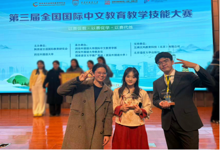 2025年11月21日至23日,第三届全国国际中文教育教学技能大赛在历史文化名城西安圆满落幕,来自全国160余所高校的500多名顶尖学子齐聚一堂,同台竞技,展现中文魅力。我校选派的三名优秀学子:来自文学院汉语国际教育专业24级5班的张子琪、孙云泽和23级6班的杨梓在带队老师张杨和王学文的指导下在比赛中表现卓越,凭借扎实的语言功底和出色的综合能力,从众多参赛者中脱颖而出,最终荣获全国二等奖、三等奖及优秀奖各一项,为学校赢得了荣誉。